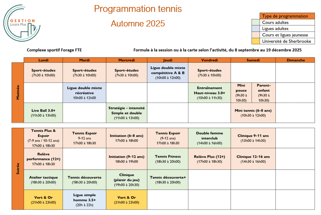 Les participants aux activités de la division tennis doivent détenir une carte Tennis +.