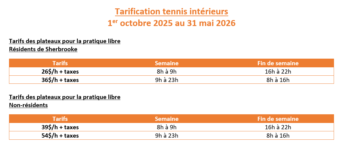 Veuillez contacter le directeur et le coordonnateur de la division tennis pour plus d’information.